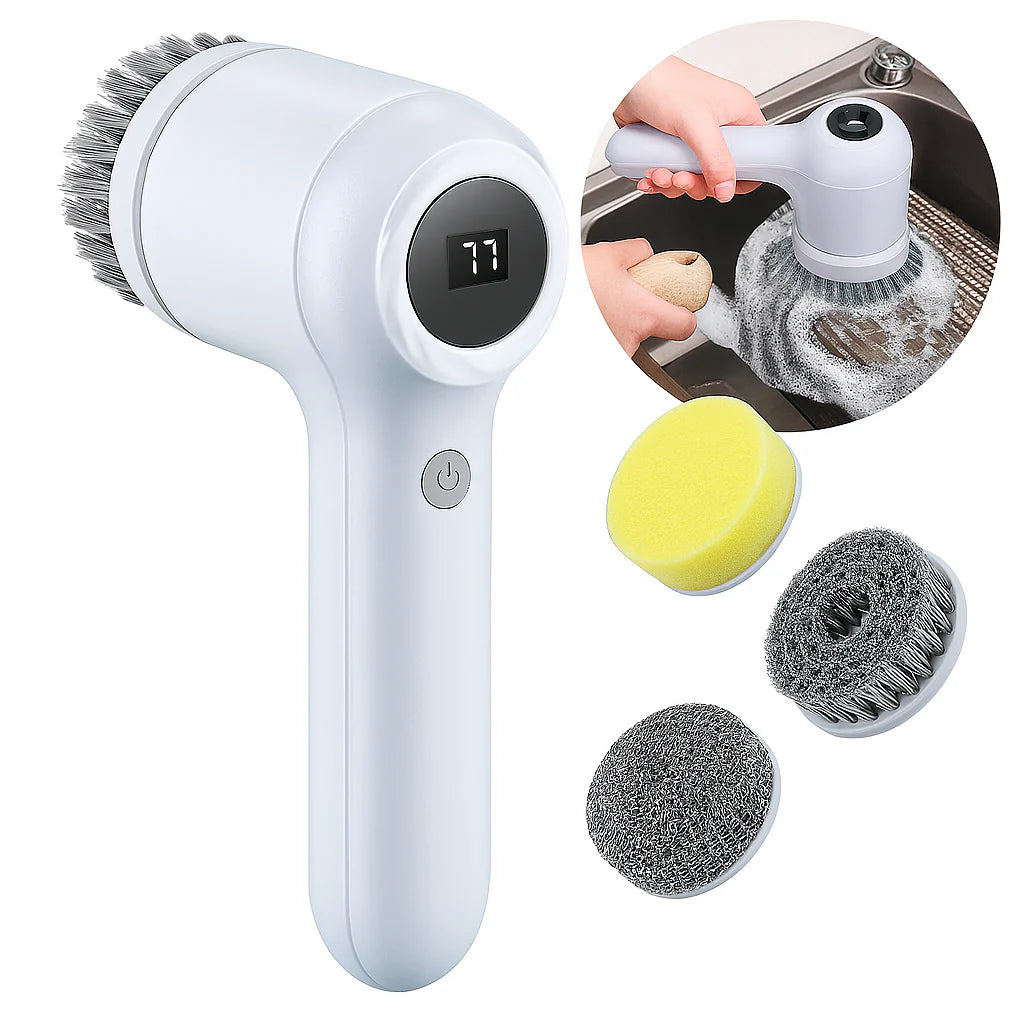 Este cepillo eléctrico con batería recargable y pantalla LED te permite limpiar con solo presionar un botón. Incluye tres cabezales intercambiables: cepillo profundo, esponja suave y esponjilla de brillo. Ideal para platos, fregaderos y más. Este cepillo eléctrico combina tecnología y funcionalidad, es perfecto para limpiar desde platos hasta superficies difíciles.