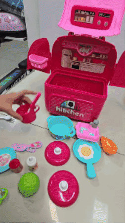 La Cocinita Móvil de Juguete incluye todos los utensilios que una mini chef necesita: ollitas, sartenes, cucharones y alimentos de juguete. Además, se guarda fácilmente en su maleta portátil.Fomenta la imaginación y la creatividad mientras tu pequeña explora el arte de cocinar. Es el regalo perfecto para cumpleaños, Navidad o cualquier ocasión especial.