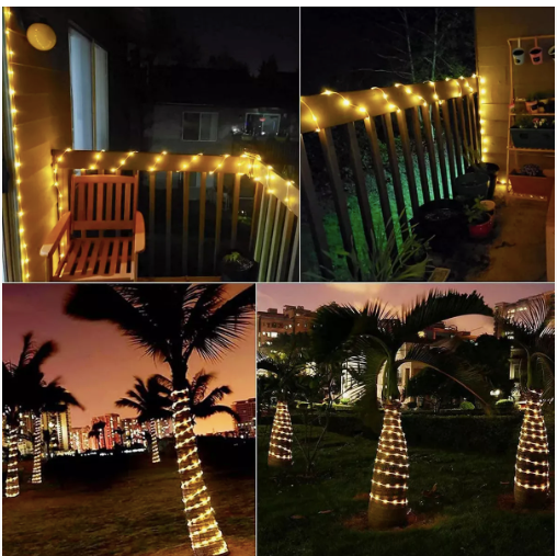 ⚡Ilumina, decora y ahorra con las luces solares LED más prácticas del mercado.Con panel solar inteligente y batería recargable, funcionan automáticamente al anochecer sin necesidad de enchufes.Perfectas para jardines, eventos, terrazas y habitaciones. Su tubo de PVC flexible protege los 200 LEDs, garantizando durabilidad y brillo envolvente.